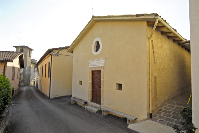 La piccola chiesa sorge sul terreno chiamato “la Chiusa” che si trova sul finire del paese, lungo la strada che conduce alle frazioni di Civita e a quelle di Colle Santo Stefano, Serviglio e Santa Trinita.