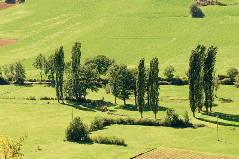 Al di sopra dei paesi ci sono i boschi, prima dominati dal Cerro e più in alto dal Faggio, sotto i seminativi, i prati falciabili e gli erbai, intersecati dalle antiche strade fiancheggiate da filari di querce e da siepi di Acero campestre e Biancospino, punteggiati di alberi isolati e da svettanti gruppi o file di pioppi cipressini.